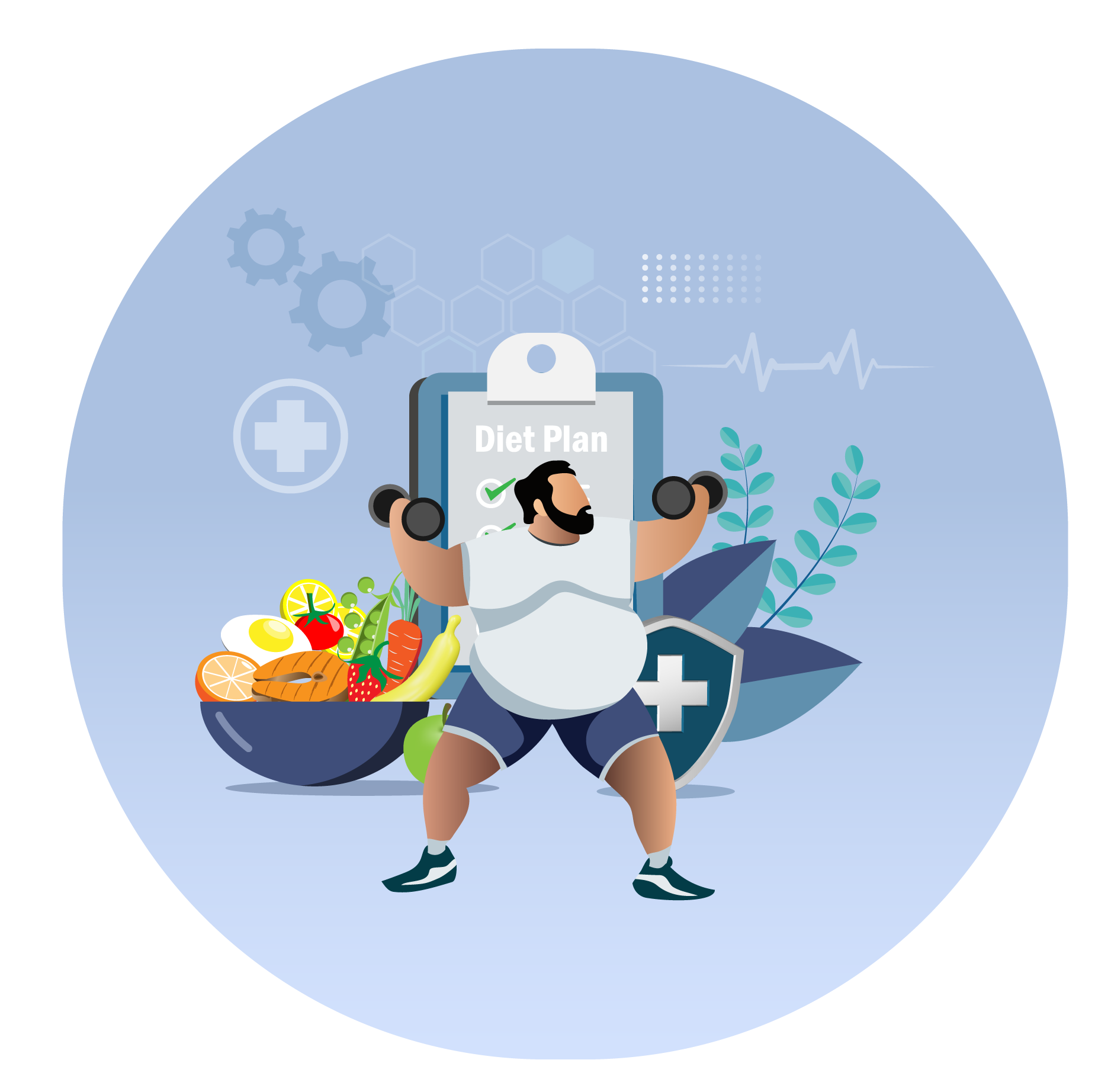 Balanced diet rich in fruits, vegetables, lean proteins, and whole grains.